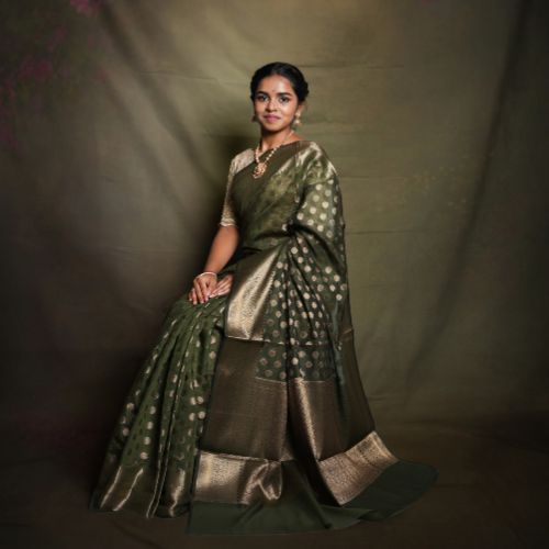 Elevate your ethnic wardrobe with this Banarasi Soft Cotton Saree, beautifully adorned with delicate small butta motifs. Crafted from premium-quality soft cotton, it offers a breathable, lightweight, and comfortable drape, perfect for any occasion. The fine Banarasi weave adds a touch of elegance, making it an ideal choice for festive gatherings, office wear, or casual outings.
